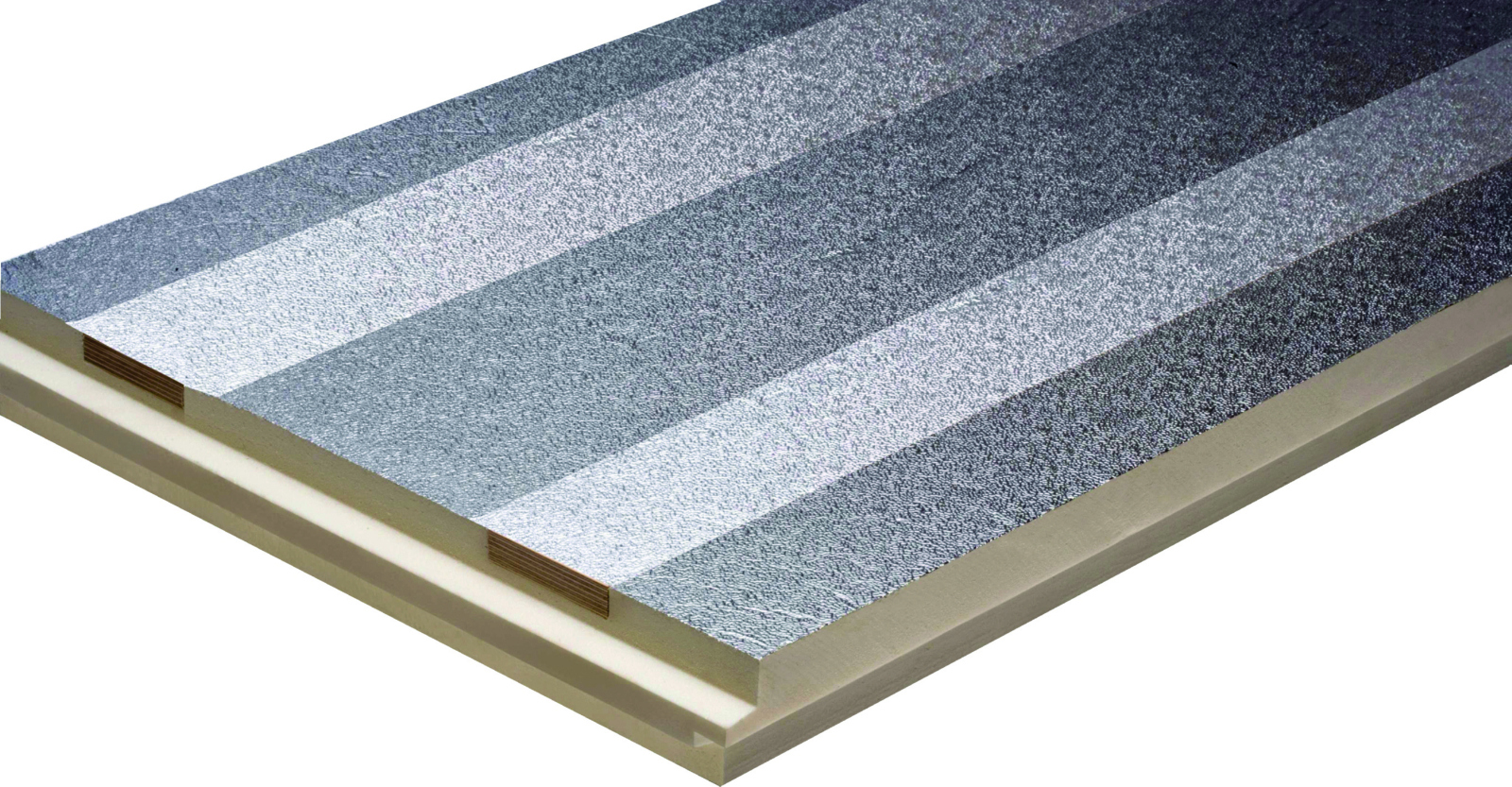 puren M besteht aus dem Hochleistungsdämmstoff PUR/PIR-Hartschaum (Polyurethan) und verfügt über eine beidseitige Deckschicht aus Reinalauminium (50 µm).