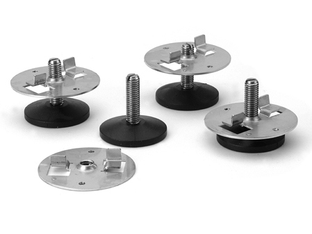 4 Füßen mit Halter aus Edelstahl, Fussplatte aus Polyamid.