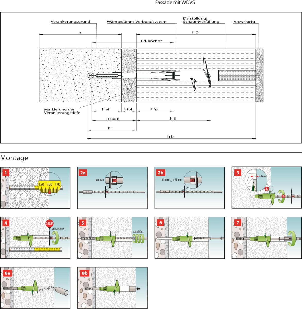 - nur ein Dübel für alle Dämmstoffstärken ab 100 mm garantiert kostensparende, optimale Lagerhaltung und Verfügbarkeit