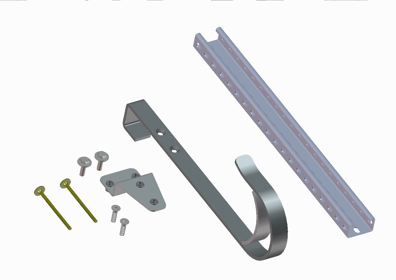 Der Sicherheitsdachhaken Nr. 22 P ist mit einer C-Profilschiene verbunden. so dass eine horizontale Verstellbarkeit möglich ist.