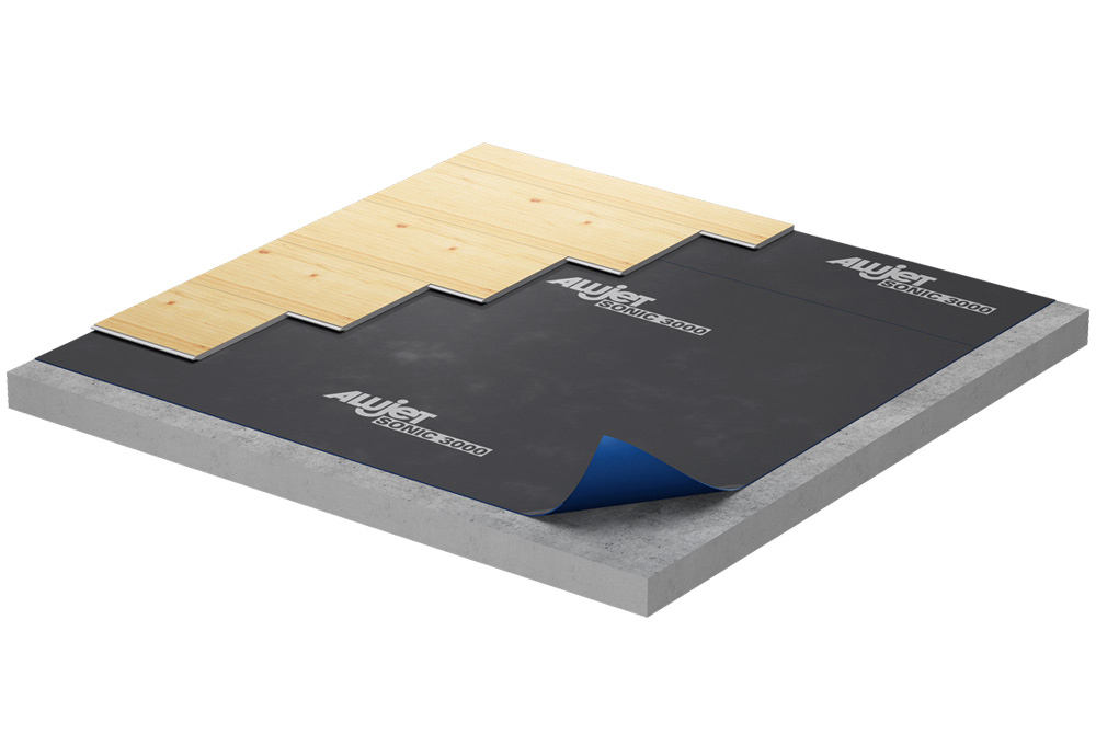 Der Großteil an Laminat- und Parkettböden wird heute “schwimmend” verlegt, das bedeutet, es besteht keine feste Verbindung zum Untergrund bzw. Estrich. Diese Einbauweise führt bei Beanspruchung des Bodens zu einer hohen Schallübertragung des an den Untergrund bzw. Estrich. Einen revolutionären Durchbruch in der Reduzierung von Raum- und Trittschall wurde jetzt mit der Spezialbahn, bestehend aus Gesteinsmehl, ALUJET Sonic 3000 erreicht.