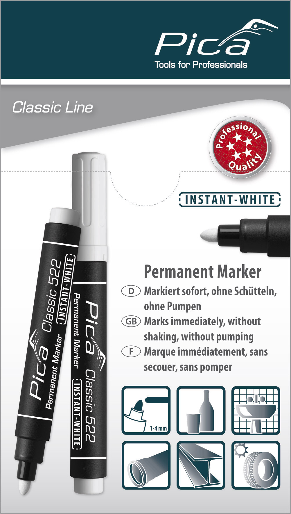 Instant-White Tinte: Markiert sofort, ohne Schütteln, ohne Pumpen - Pica Classic Industry Paint: