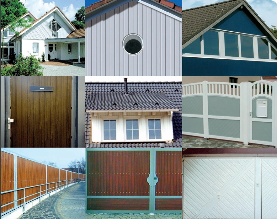 Einsatzbereich Bausektor KömaPan eignet sich im Bausektor hervorragend für den Einsatz in Hoftorfüllungen, Garagentorfüllungen, Haustürfüllungen, Balkonfüllungen sowie für Fassadenverkleidungen, Attikaverkleidungen und Giebelverkleidungen. Ebenso optimal im Einsatz für Sicht- und Lärmschutz sowie Dachunterstandsverkleidungen.