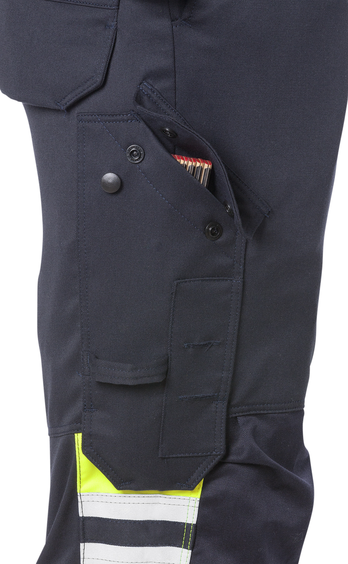 Stretch-Material / schmutz-, öl- und wasserabweisend / 2 Vordertaschen / 2 CORDURA®-verstärkte Gesäßtaschen mit Patte und verdecktem Druckknopfverschluss / Doppelt verstärkte Schrittnaht / Hammerschlaufe / CORDURA®-verstärkte Zollstocktasche mit Patte und verdecktem Druckknopfverschluss und Knopf sowie Schlaufe für Arbeitsmesser / Beintasche mit Patte und verdecktem Druckknopfverschluss, Handytasche mit Patte und Klettverschluss, D-Ring unter der Patte / CORDURA®-verstärkte Knietaschen, von innen zugänglich / Höhenanpassung der Kniepolster in den Knietaschen möglich / CORDURA®-verstärkte Beinabschlüsse / Doppelnaht an Reflexstreifen / Geprüft und zugelassen gemäß EN 14404 zusammen mit den Knieschoner 124292, EN 61482-1-2 Klasse 1, EN 61482-1-1-1 EBT: 10,3 cal/cm2 HAF: 80% (siehe Lichtbogentabelle für zertifizierte Bekleidungskombinationen nach EN 61482-1-2 Klasse 2 und offener Lichtbogen nach EN 61482-1-1-1), EN ISO 11612 A1 B1 C1 F1, EN 1149-5, EN ISO 11611 A1 Klasse 1 (siehe Flamm- und Schweißtabelle für zertifizierte Bekleidungskombinationen), EN 13034 Typ PB[6], EN ISO 20471 Cl 1 / Industriewäsche geeignet gemäß ISO 15797 / OEKO-TEX® zertifiziert.