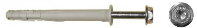 - System ist vormontiert, enorm reduzierter Montageaufwand, der Dübel wird samt Schraube soweit ins Bohrloch geschlagen, bis der Dübelrand am zu befestigenden Gegenstand anliegt