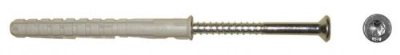 - System ist vormontiert, enorm reduzierter Montageaufwand, der Dübel wird samt Schraube soweit ins Bohrloch geschlagen, bis der Dübelrand am zu befestigenden Gegenstand anliegt