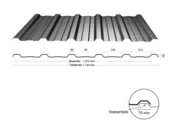 Es eignet sich für Dach, Wand und Fassade. Für den Einsatz am Dach verfügt das Trapezprofil 22-214 über eine Wasserfalle. Diese unterbricht im Überlappungsbereich die Kapillarwirkung. Das Trapezprofil 22-214 ist eines unserer beliebtesten Profile: Seit über 25 Jahren fertigen wir es unverändert.