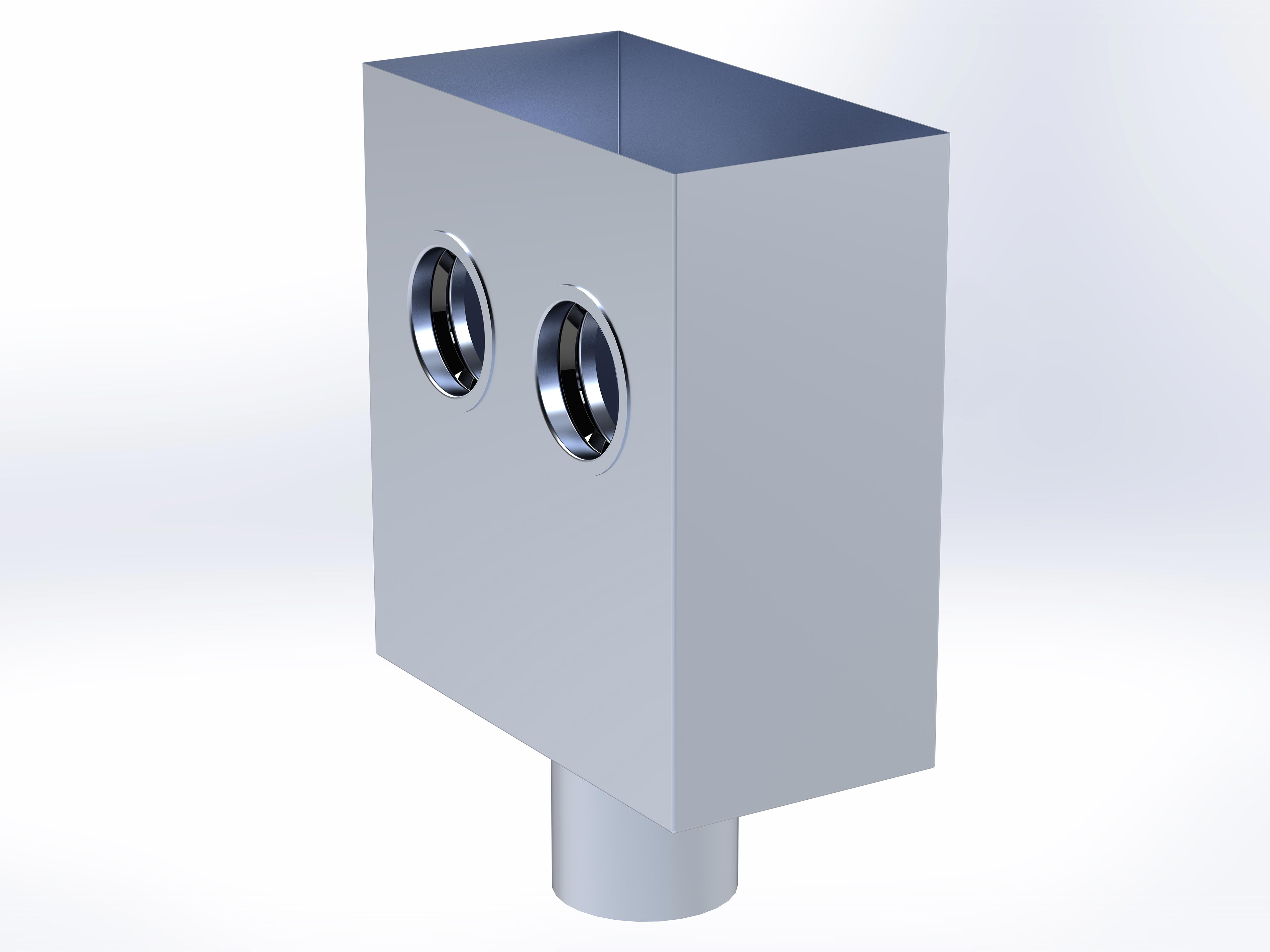 Doppel-Wasserfangkasten aus blankem Zink, mit Muffen
