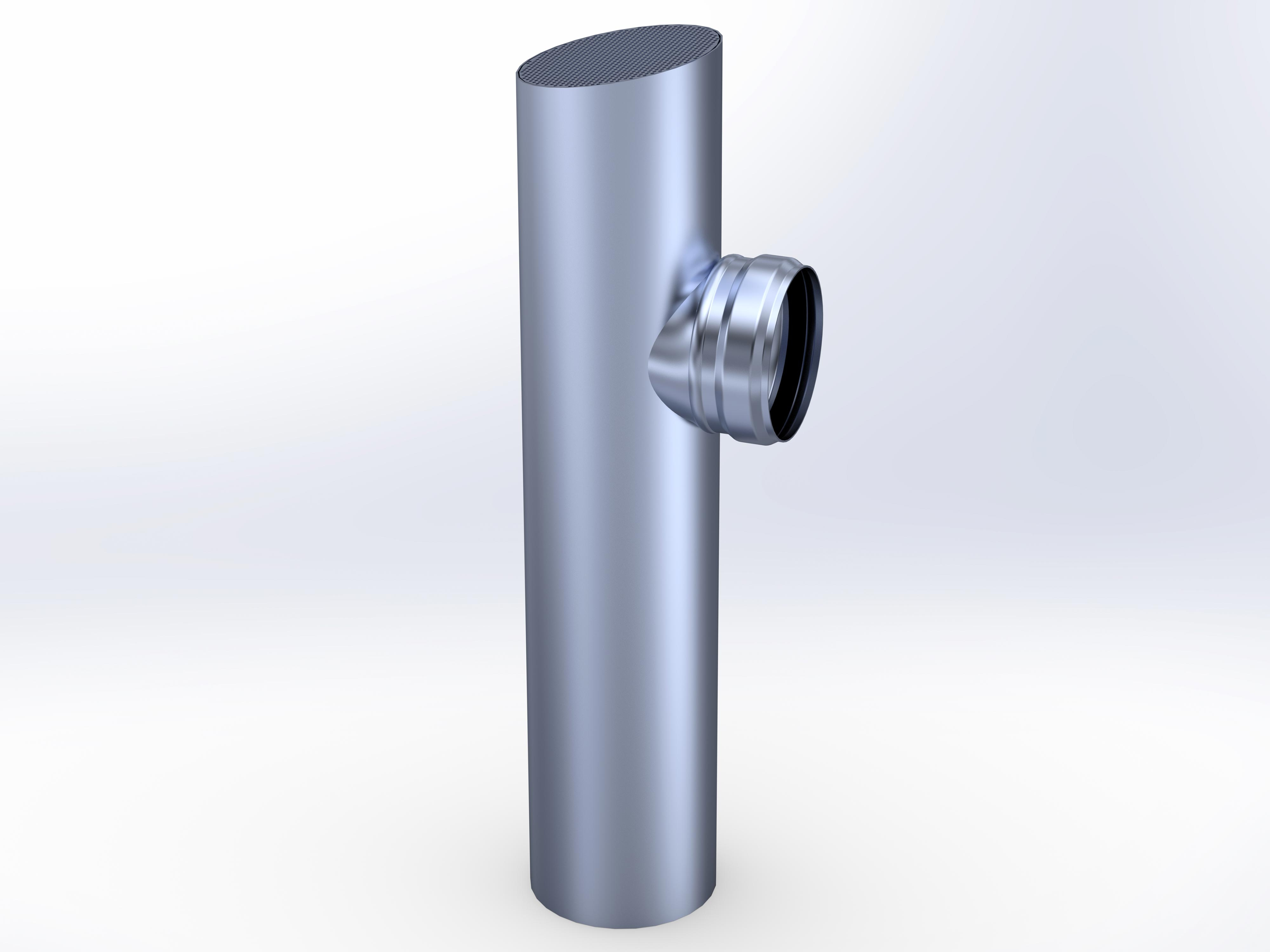 Abzweig aus Zink, rund, mit Regenrohrmuffe, zum Anschluss an runde Regenfallrohre oben und unten
