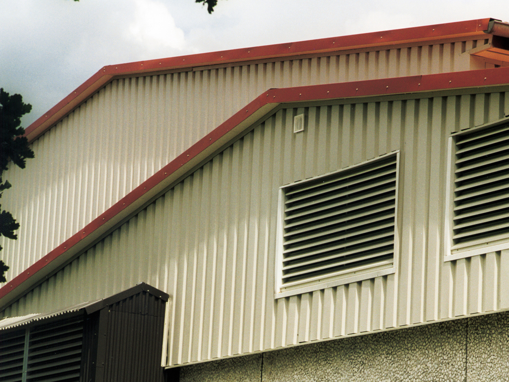 Das Trapezprofil 35-207 fertigen wir als Fassadenprofil mit breiten Obergurten und schmalen Untergurten.