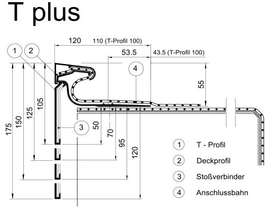 - industriell gefertigte montagefertige Profilserien (T plus, TW 125plus, TA , TA-4F, TAG, art-line 1) für alle Dachabdichtungen (Kunststoff- oder Bitumen-Dachbahnen) aus Aluminium