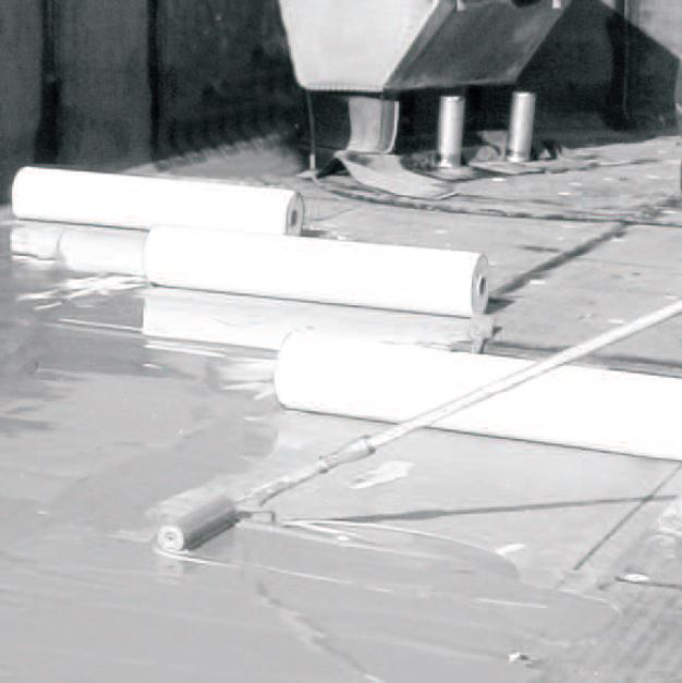 - Auftragen der Basisschicht, mit Pinsel oder Kunststoffrolle (Flächenauftrag: ca. 2 kg/qm)