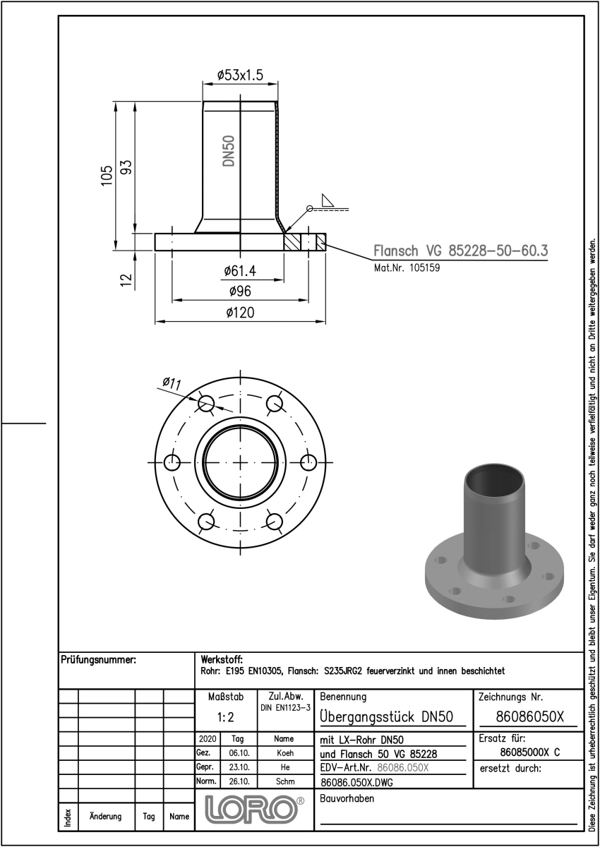 LORO-X Übergangsstück mit VG-Flansch 85228 und Steckmuffenverbindung