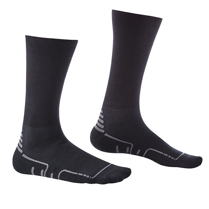 ESD Wintersocken aus Mischgewebe. Dank hohem Anteil an Merino-Wolle profitiert man bei dieser Socke von den verschiedenen Vorteilen dieses Stoffes: Hervorragender Isolationsschutz gegen Kälte, angenehmes Tragegefühl ohne Kratzen. Atmungsaktivität und antibakterielle Wirkung dank spezieller Oberflächenstruktur. Sie sind bequem und funktionell, sowohl gegen das Auskühlen als auch gegen das Schwitzen der Füße.