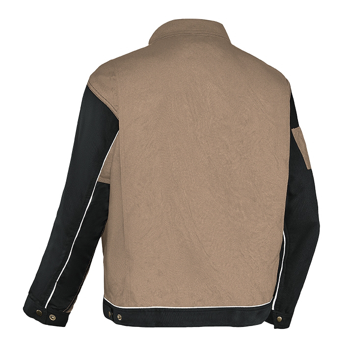 Äußerst reiß- und abriebfestes Gewebe mit wasser-, öl- und schmutzabweisender Oberflächenbeschaffenheit. Original CORDURA®-Besätze an den Ellenbogen. Kontrastfarbig abgesetzte Schulter- und Oberarmpartie, Manschetten sowie Bund. Verdeckte Frontleiste mit