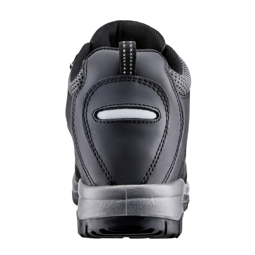 Obermaterial: hydrophobiertes Nubukleder, reflektierende Applikationen Futter: atmungsaktives Textil-Funktionsfutter Sohle: 2-Dichten TPU/PU-Sohle mit PU-Überkappe Zehenschutzkappe: Stahlkappe Durchtritthemmung: Stahl Fußbett: ganzflächige Einlegesohle