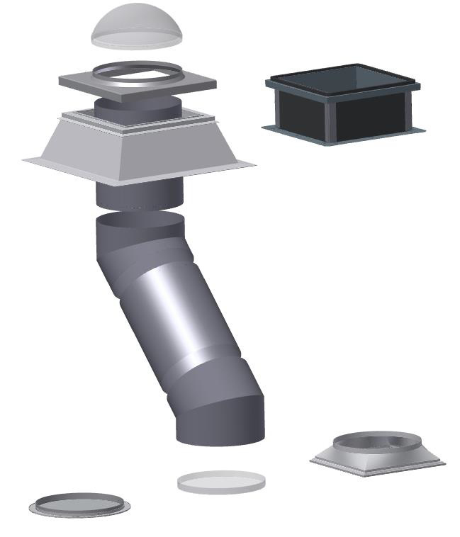 Das Licht wird dafür auf dem Dach in einer Acryl-Lichtkuppel mit Streuplatte gebündelt und über eine bis zu 12m lange Lichtröhre, die zur Anpassung an den Dachaufbau mit geneigten Kniegelenken versehen werden kann, geleitet.