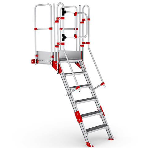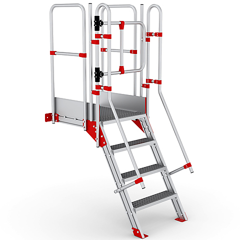 Dazu gehören Handläufe an beiden Seiten sowie Geländer und Fußleisten bei allen Podestvarianten.