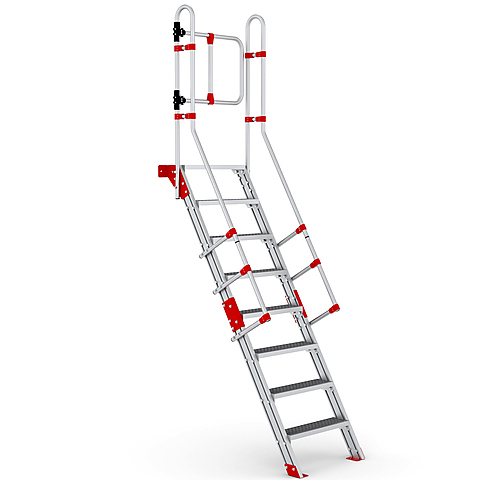 Die ABS Treppenleiter besteht aus 2- und 4-stufigen Treppenelementen, die bis zu einer Gesamthöhe von 300cm (12 Stufen) kombiniert werden können.
