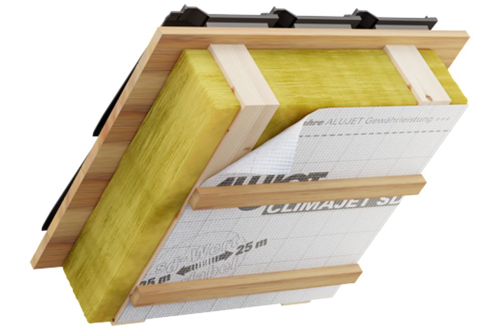 Aufgrund des 3-lagigen Produktaufbaus können verschiedene Eigenschaften in einer Bahn vereint werden. So ist die erste Lage eine Membran, die für einen Sd-Wert von 5 m sorgt und auch die luftdichte Ausführung von Überlappungen, Anschlüssen und Durchdringungen garantiert.