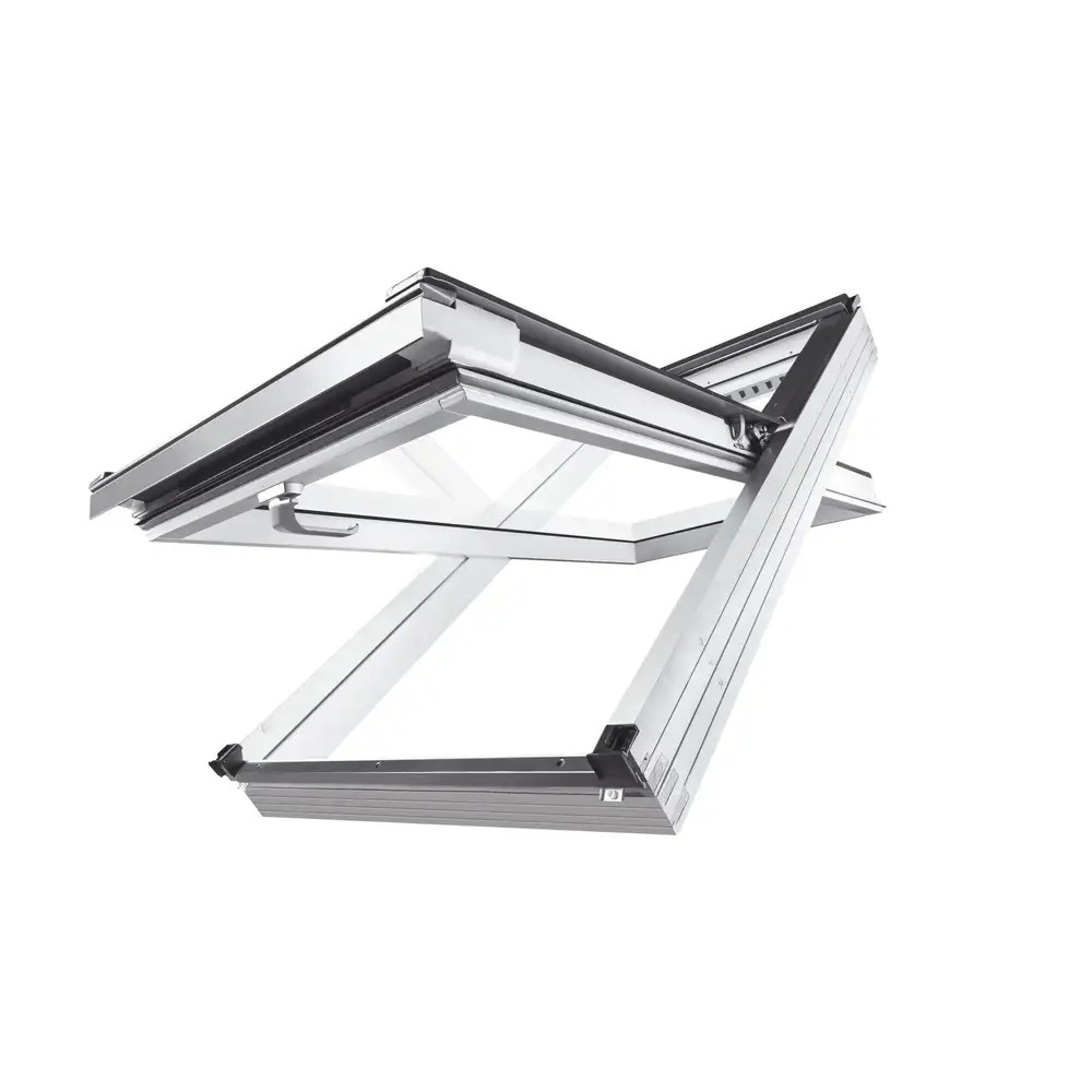 Schwingfenster stellen die einfachste, aber am häufigsten genutzte Fenstervariante im Dachbereich dar. Die Konstruktion der Beschläge ermöglicht eine sichere Stellung des geöffneten Flügels in allen Positionen sowie ein Umschwenken des Fensters um 180 Grad in eine arretierbare Putzstellung. Eine bequeme Bedienung ist aufgrund des im unteren Teil des Fensters angebrachten Griffs selbst bei höher verbauten Fenstern gewährleistet. Die automatische Dauerlüftung V40P sorgt für einen effektiven Zustrom von frischer Luft und sichert ein gesundes Mikroklima im Dachgeschoss.