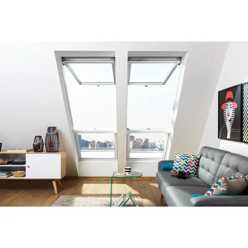 - vierfaches Dichtungssystem. Die Verglasungsdichtung sorgt für zusätzliche Dichtigkeit bei extremen Wetterbedingungen und Dauerlüftung, der durch automatische Anpassung der Strömungskanalgröße für eine optimale Luftmenge im Raum sorgt, die ein gesundes Mikroklima im Dachgeschoss gewährleistet und Heizenergie spart