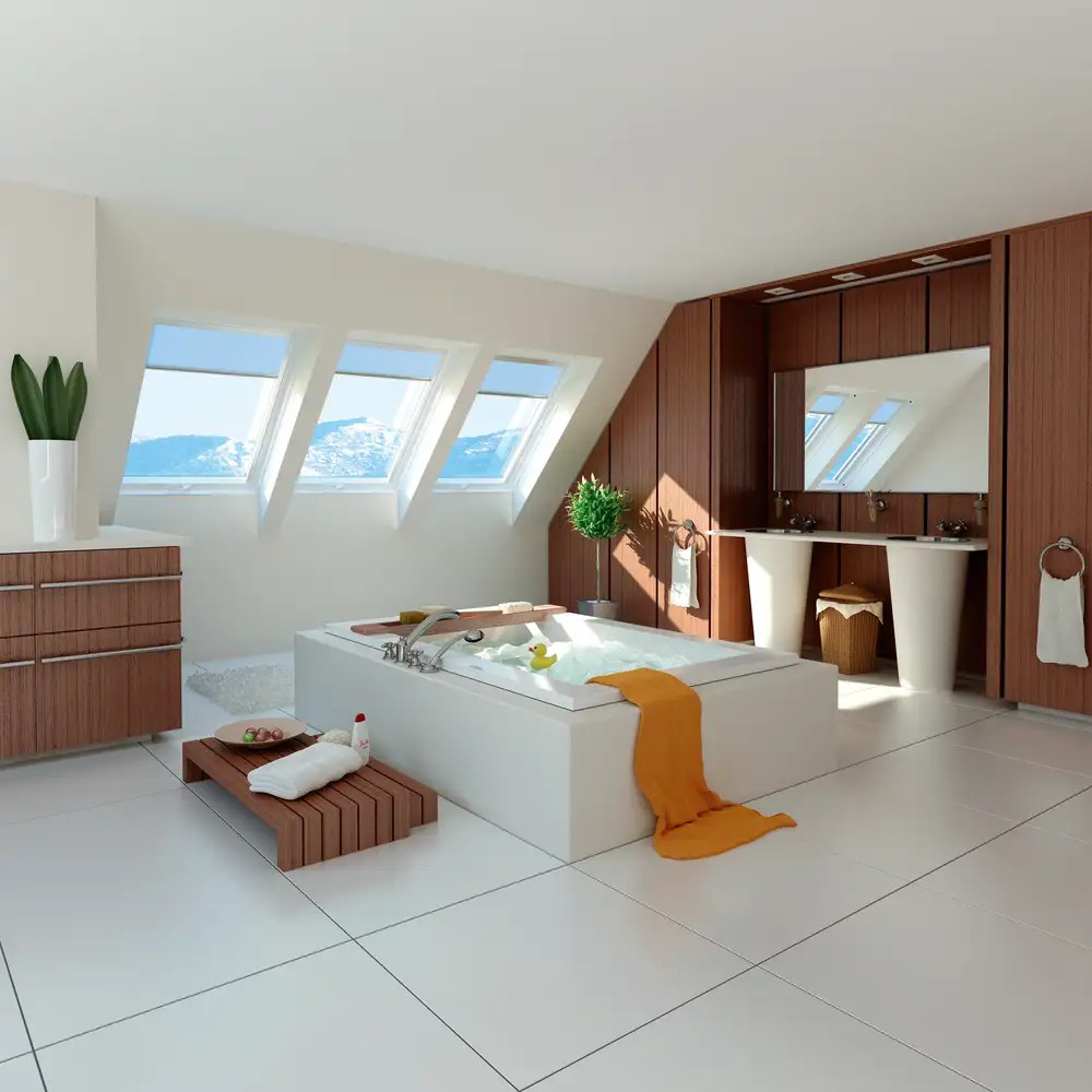 - Technologie „thermoPro“ - die angewandte Lösungen verbessern die Qualität und die Parameter von Dachfenstern, was zu einer höheren Energieeffizienz, einer längeren Lebensdauer, einer ausgezeichneter Dichtheit und einfacher Montage führt,