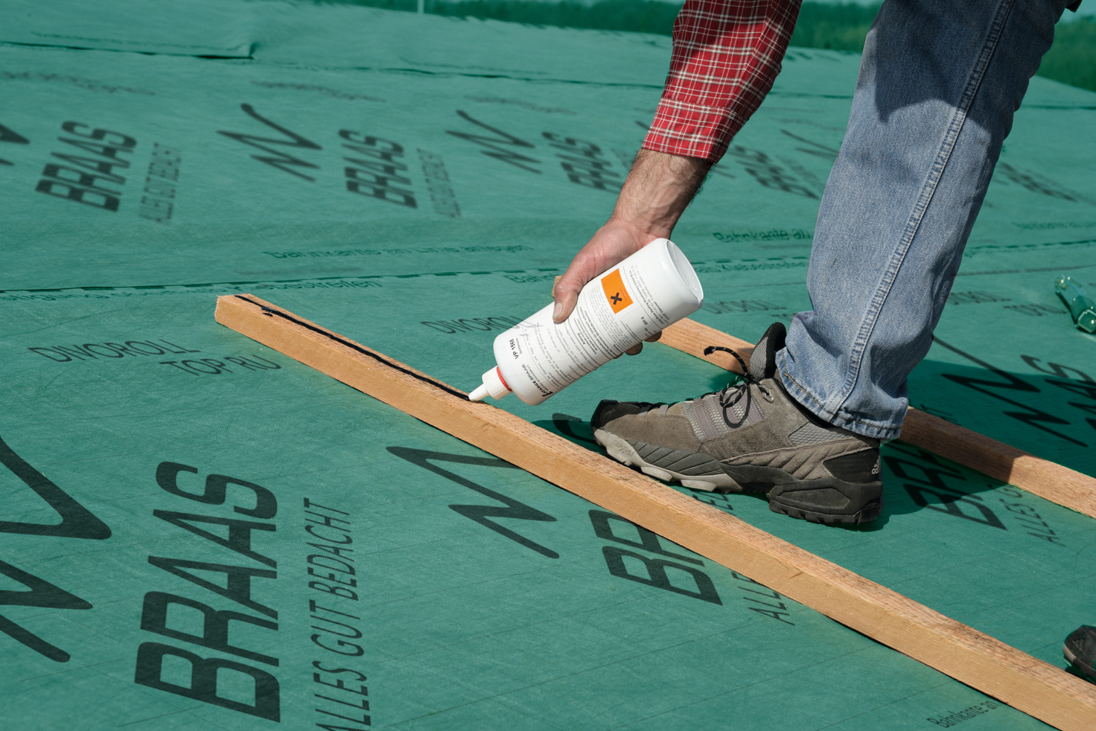 Die Verbindung der Klebe- und Dichtprodukte auf den Braas Unterdeckbahnen wird durch eine optimale Abstimmung mit der Bahnoberfläche gewährleistet.