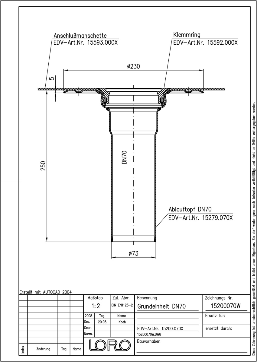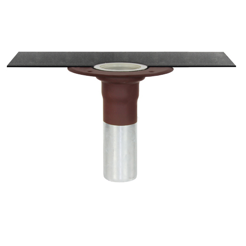 LORO-Balkonablauf-Grundeinheit mit Anschlussmanschette aus Bitumen/EPDM Verbund, Serie E und F, nach DIN EN 1253 mit erhöhtem Qualitätsstandard gemäß RAL-Gütezeichen, aus Stahl, feuerverzinkt , langlebige Außenbeschichtung gemäß DIN EN ISO 2178 auf Basis einer 2K-Epoxid-Kombination, Farbton: Rotbraun, Auslauf senkrecht, ohne Wärmedämmung, bestehend aus Ablauftopf, Anschlussmanschette, Klemmring, DN 70