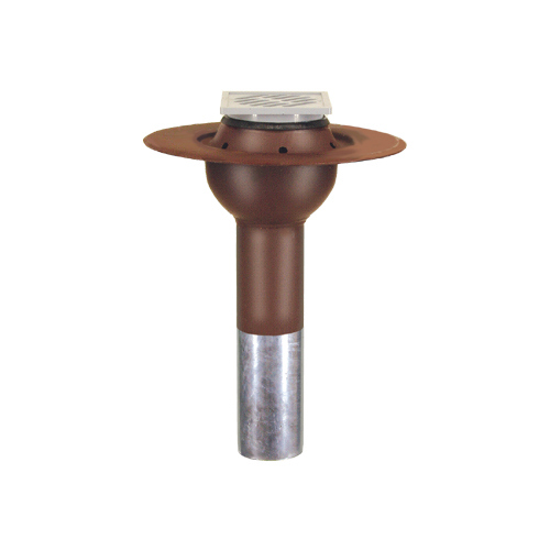 LORO-Balkonabläufe mit Stützrand, Serie A, aus Stahl, feuerverzinkt mit zusätzlicher Beschichtung, Farbton: Rotbraun, Auslauf senkrecht / Auslauf seitlich bestehend aus: Ablauftopf, Dichtelement, Kunststoffsieb quadratisch, 82 X 82 mm (für Aufbauhöhe 30 ± 5 mm), DN 50 und DN 70