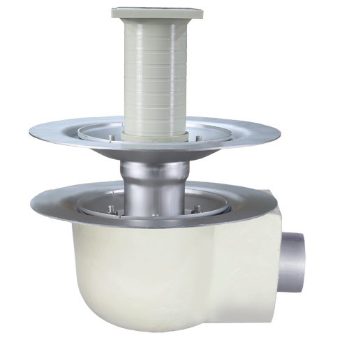 LORO-X VERSAL Balkonablauf, Serie K, zweiteilig mit Wärmedämmung, Auslauf seitlich 3 Grad, mit Klemmflansch, nach DIN EN 1253 mit erhöhtem Qualitätsstandard gemäß RAL-Gütezeichen GZ-694, aus Edelstahl, bestehend aus Ablauftopf, Flanschdichtring, Losflansch, Dichtelement, Etageneinsatz (für Aufbauhöhe 40 - 120 mm), Flanschdichtring, Losflansch, Entwässerungsring, Siebaufnahme 100 x 100 mm (für Aufbauhöhe 10 - 130 mm), Edelstahlsieb, DN 50
