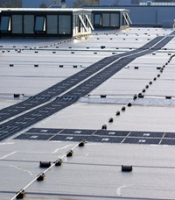 Megarock ist besonders geeignet für Dächer oder Dachbereiche, die begangen werden müssen oder auch zeitweise zum Aufenthalt von Personen vorgesehen sind. Einsatzbereiche sind z.B. Wartungs- und Fluchtwege, Rinnenbereiche, Wege zu Technik- und Versorgungszentralen sowie umliegende Dachbereiche oder Dächer mit aufgestellten Solaranlagen.