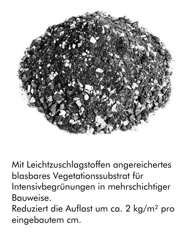Auf der Basis von Zincolit® Plus-Leicht (speziell aufbereitete Tonziegel mit ausgewählten Zuschlagstoffen) hergestelltes Substrat, angereichert mit Zincohum (Substratkompost mit Faserstoffen).