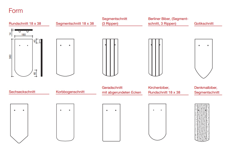 Koramic Segmentschnitt Biberschwanzziegel aus Eisenberg