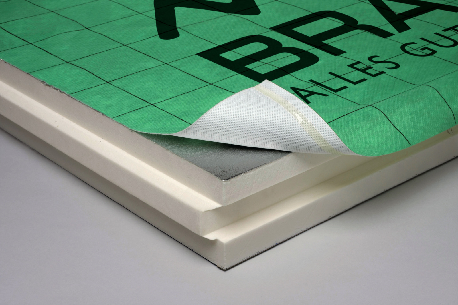 - Material: PUR / PIR Hartschaum beidseitig mit Aluminium beschichtet und oberseitiger Kaschierung aus 3-lagiger Unterdeckbahn aus Polypropylen