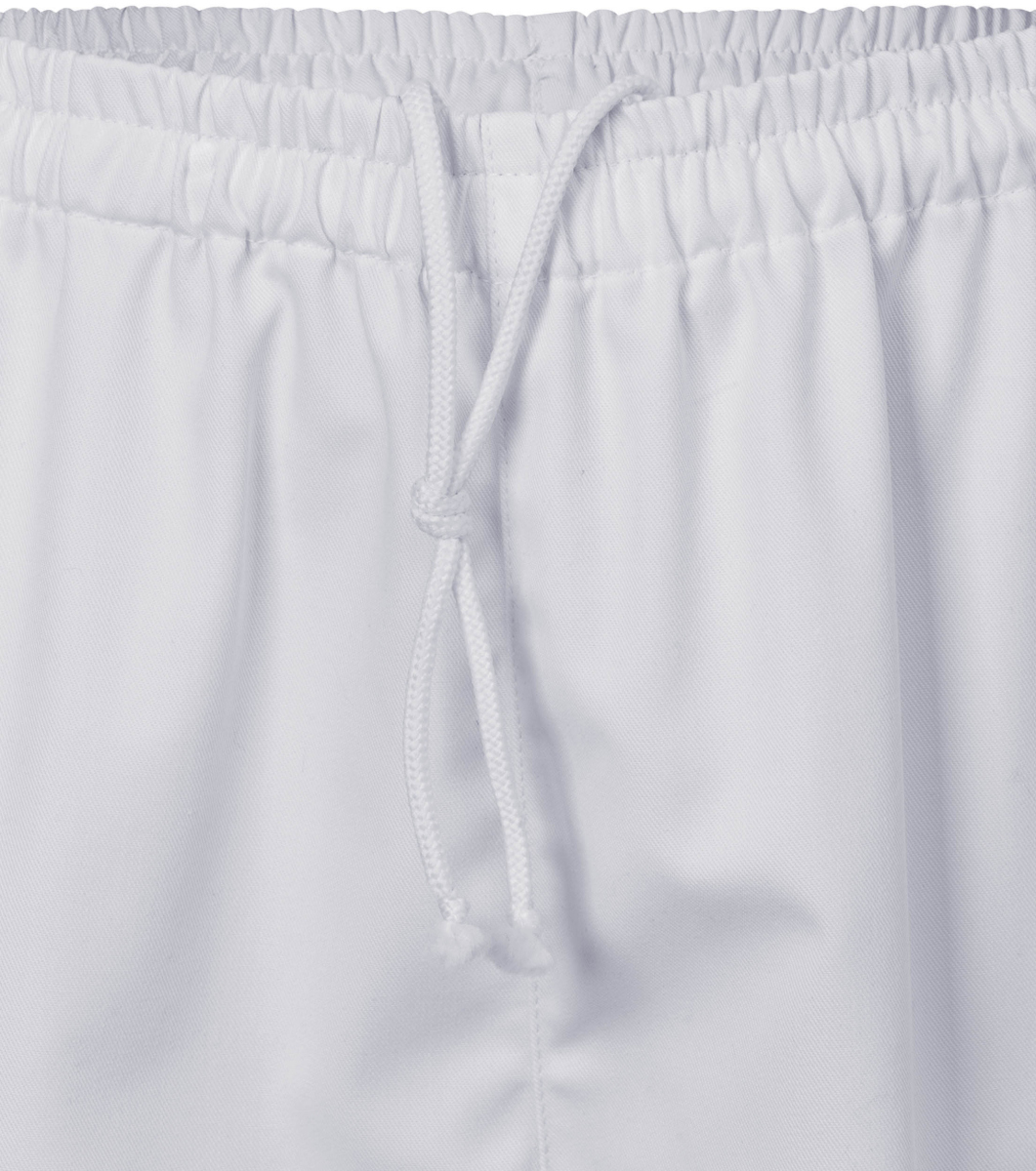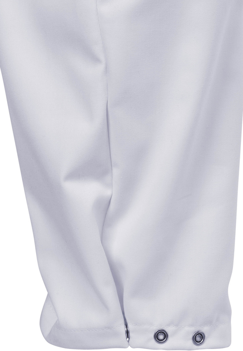 Geeignet für den Einsatz gemäß HACCP-Regeln / Verstellbare Bundweite mit Gummizug / Verstellbare Beinabschlüsse mit Metallknöpfen / Industriewäsche geeignet gemäß ISO 15797 / OEKO-TEX® zertifiziert.