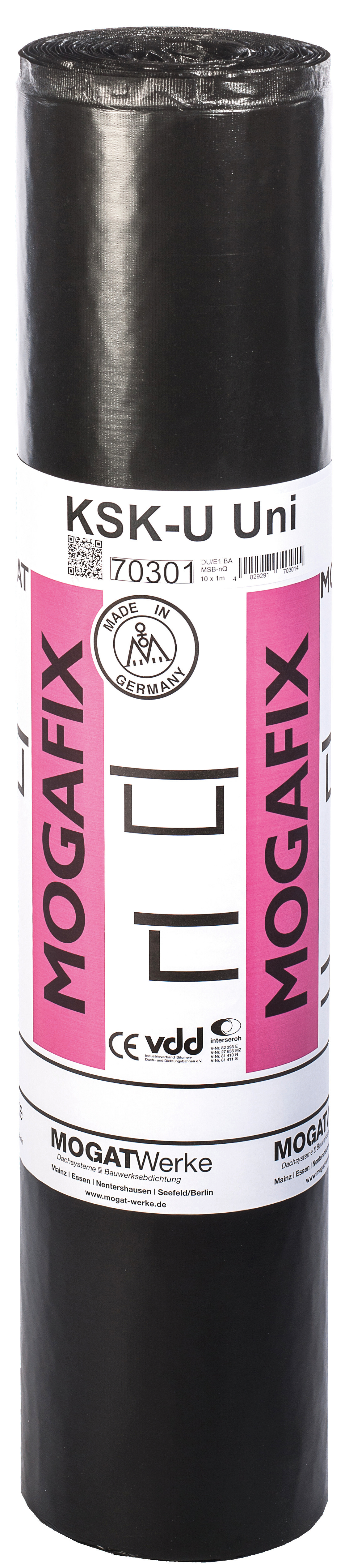 MOGAFIX KSK-U Uni ist eine kaltselbstklebende Multifunktions-Elastomerbitumenbahn für alle Untergründe und Dämmungen.
