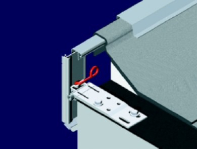 Gelenksystemhalter + Trägerprofil TF für den Anschluss von Folien (hochpolymere Dachdichtungsbahnen) mit einer Dicke von 1,5 bis 2mm.